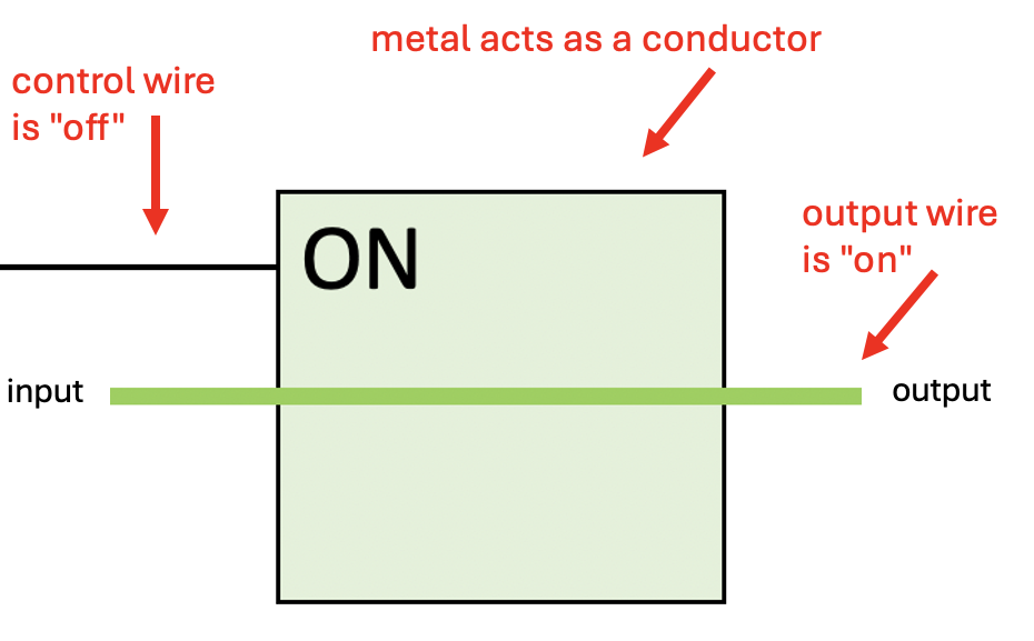 ✔ QUICK-CHECK 4.6: Select 5V in the interactive visualizer to see how the vacuum tube behaves as an electrical switch, turning "on" the output wire when the control wire is "on".